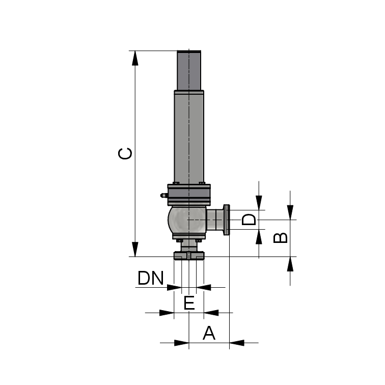 Gruppe: Membran Federsicherheitsventil Eckform pneumatisch anlüftbar